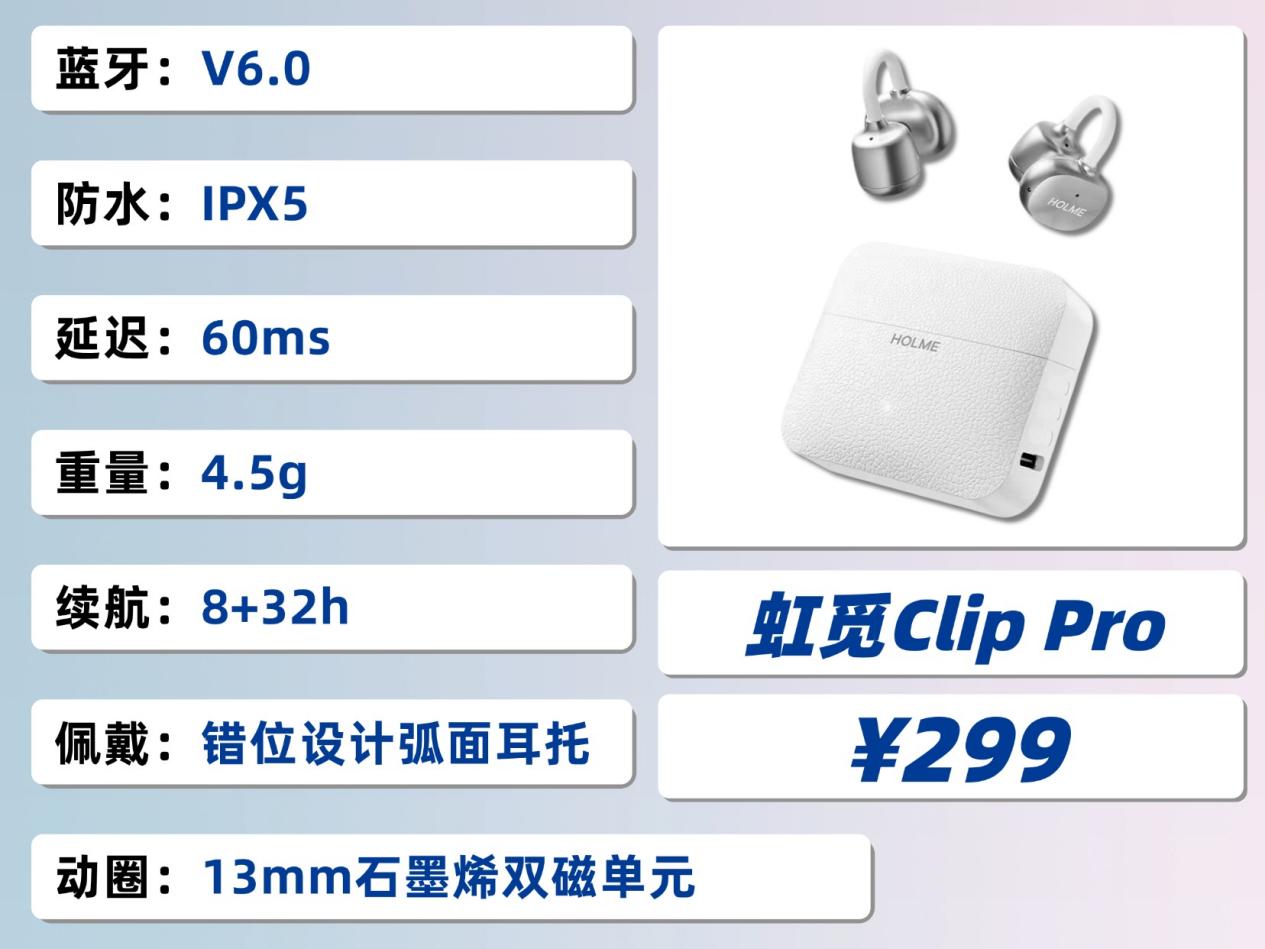 这款虹觅Clip Pro佩戴起来基本没什么存在感,也不会有夹耳的感觉,而且前高后低的2.5mm错位设计搭配电池仓12度弧面耳托,能更好的贴合耳背,进一步提升贴合度与舒适度。动圈选用双磁喇叭,靠两款高精度叠加磁铁配合强磁场,进一步提升音质与音量;还采用气旋式引擎腔体技术,打造圆柱形铝合金金属腔体,承载更多气流量以提高声音推力,带来更澎湃的重低音。配合上石墨烯科技振膜的高形变能力,和虹觅声学实验室的专业调音,能确保整体音质稳定不失真,细节更饱满,可以说是五百价位音质最好的耳夹式耳机!而且这款虹觅Clip Pro还支持自研的防漏音模式,开启后能发出反相声波,大幅降低泄露的声音,在图书馆、宿舍等一些安静环境下使用也不怕,整体配置也在线。