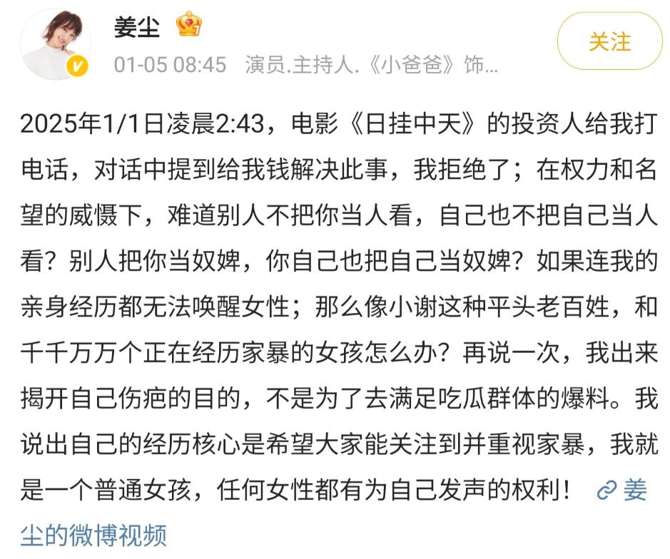 5月17号,姜尘在美国突然发了篇“战斗檄文”,替黄杨钿甜打抱不平,内容那叫一个“火力全开”:说国人仇富、说大家见不得别人好、说网友霸凌人家小姑娘一口一个“你们都不行”,把自己架在道德制高点上冲着网友一顿输出。