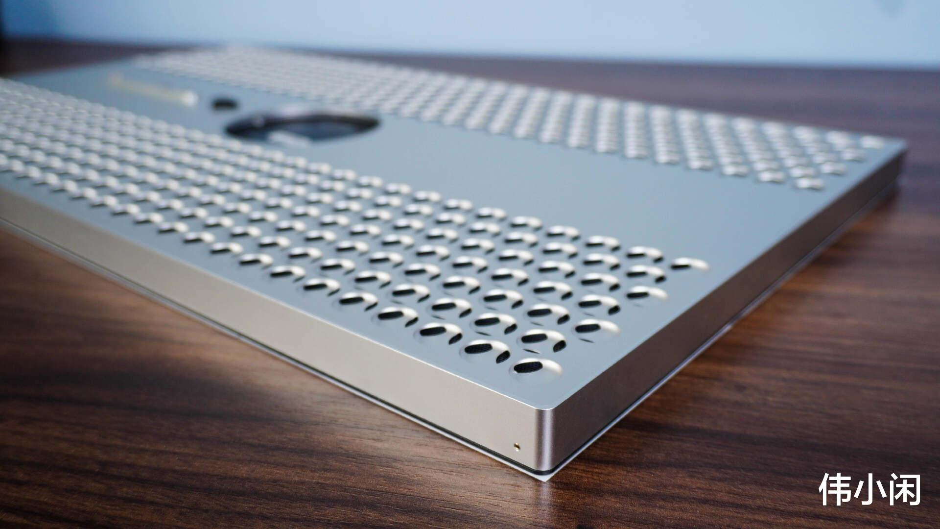 先看机身外壳的金属材质,金属材质一般更需要看其加工工艺。这款显示器采用全铝合金CNC加工,辅以阳极氧化喷砂工艺,细节的做工也非常