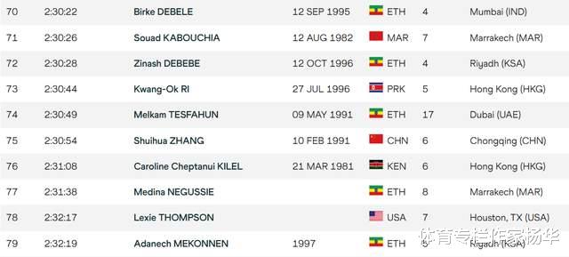 2小时30分54秒的成绩,在本赛季全球女子马拉松选手中拥有极强竞争力。截至目前,该成绩可以排在世界第75位,稳稳跻身本年度全球最快百人大名单。能拥有这样的排名水准,足以说明张水华的竞技实力已经迈入新的层级。