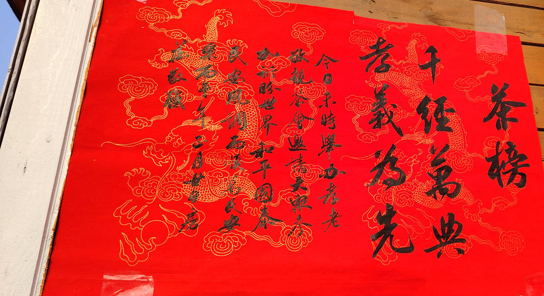 活动当日,阳光和煦、春风拂面,房庄村青山环绕、景致宜人。活动现场悬挂着一幅幅笔墨隽永的孝老敬亲书法作品,氛围雅致又温馨。