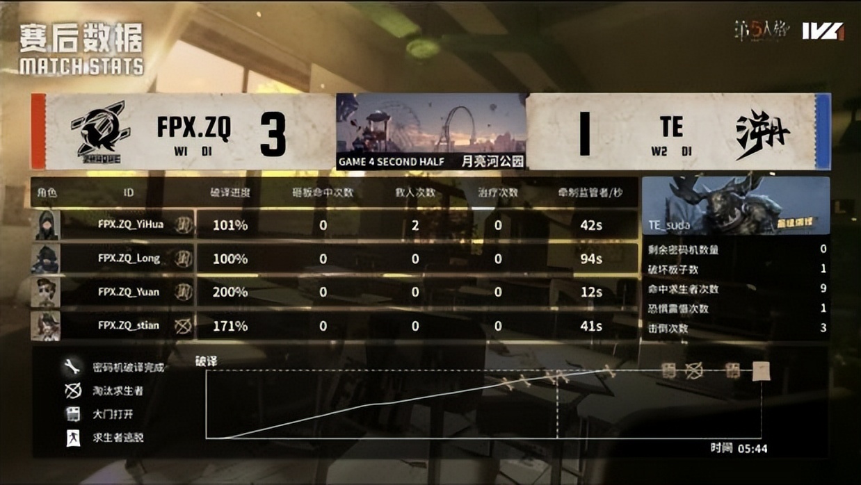 第五局比赛下半轮:FPX.ZQ求生者对阵TE监管者