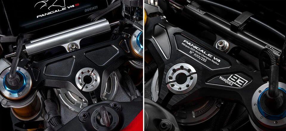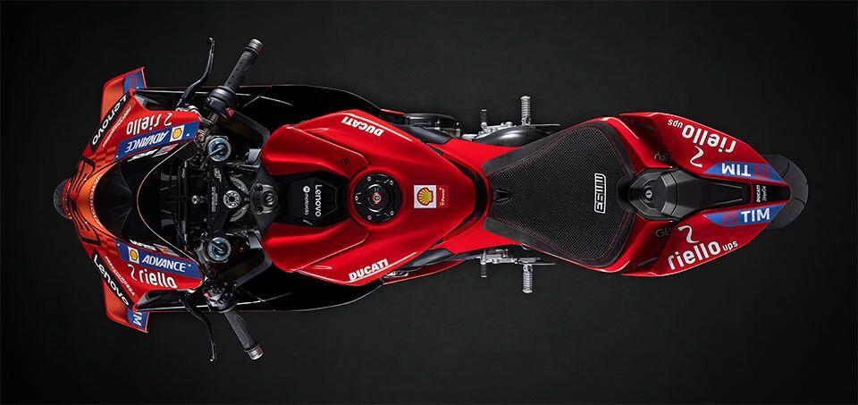 这车一打眼,你就知道它不普通。它用的涂装直接源自马奎斯夺冠时骑的Desmosedici GP厂车。你把复刻版和真正的MotoGP赛车放在一起看,那种从赛道上直接“开”下来的感觉特别强。