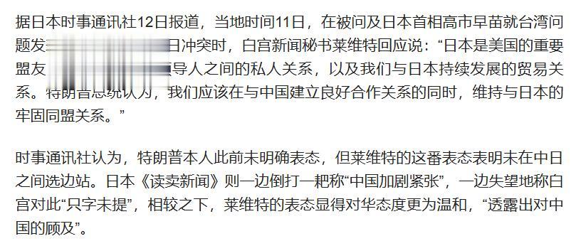 信息来源:《白宫回应了,日本舆论失望》环球时报