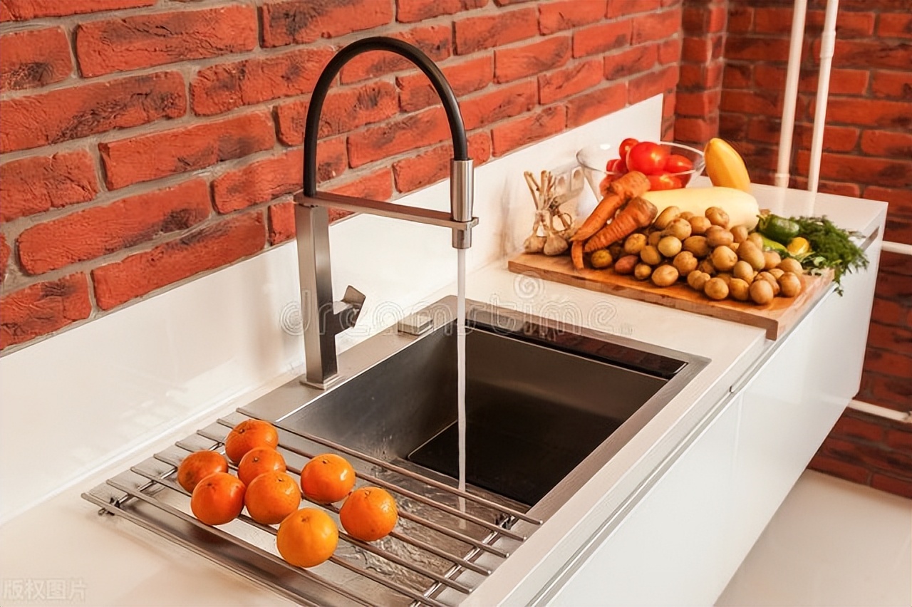 厨房:水槽上方安装可拉伸水龙头,方便清洗水槽和餐具;如果有安装洗碗机、净水器等设备,也要预留好相应的水口。