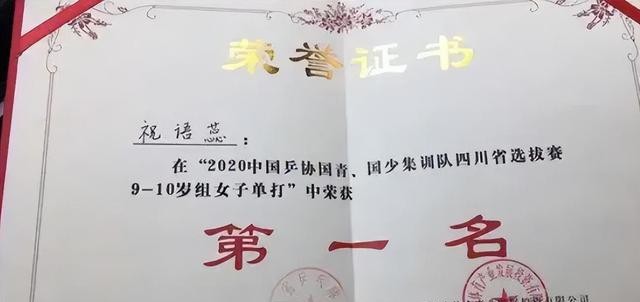 最终,祝雨蕊凭借优异的表现成功拿下了9-10年龄组的女单冠军,并很快推荐到四川省队进修。