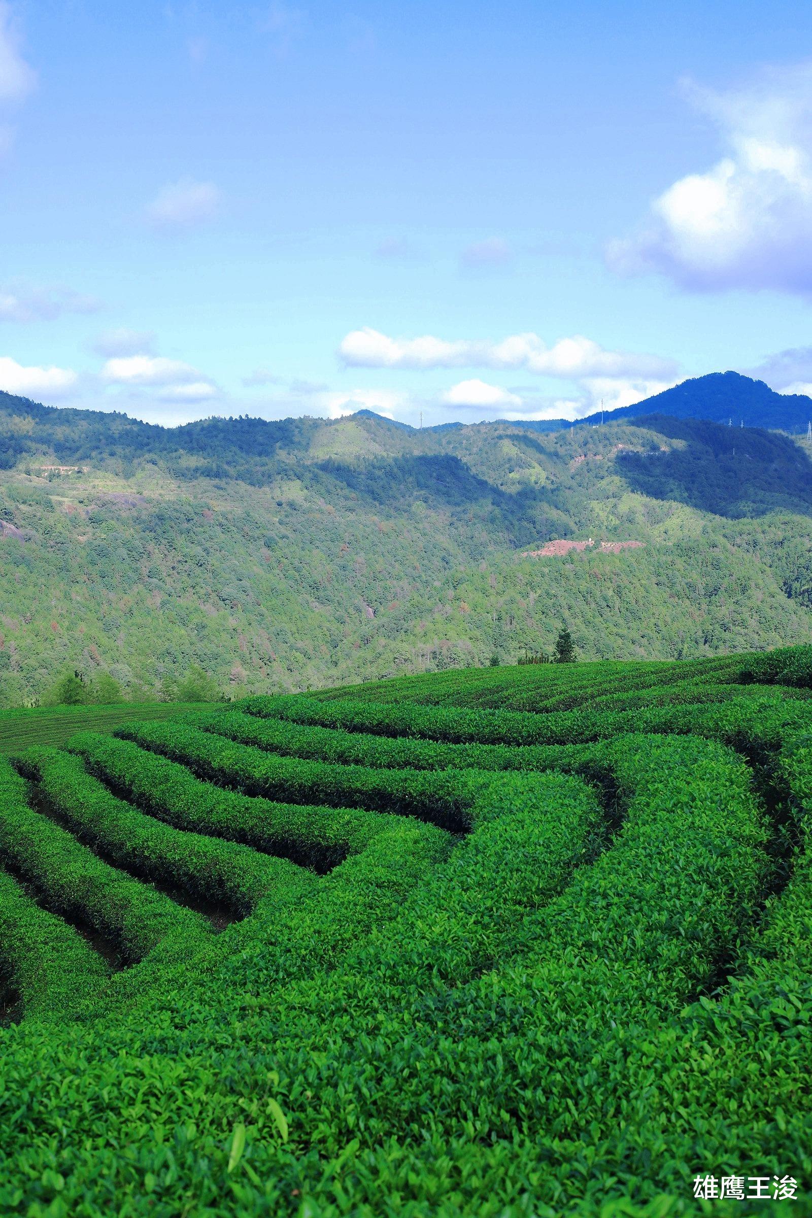 翠绿的茶树整整齐齐地排列着,仿佛是大自然的绿色卫士,忠诚地守护着这片土地。它们如波浪般绵延至视线尽头,让人不禁感叹大自然的鬼斧神工。