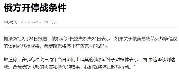 俄罗斯提出了两个停战条件: