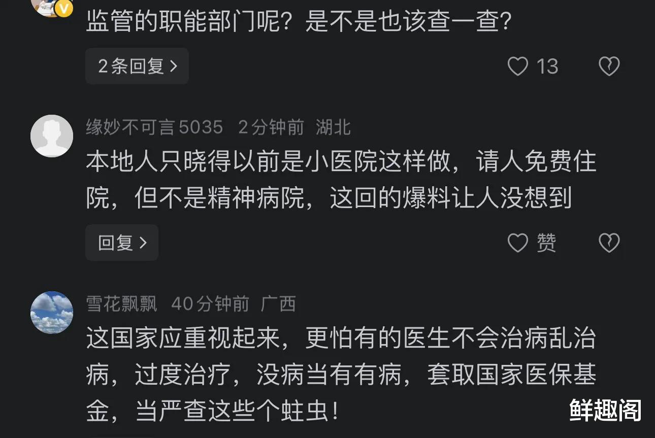 2026年2月2日,有媒体披露了湖北襄阳、宜昌等地精神病院的一些问题,简直是触目惊心。某些医院声称“免费住院、免费接送”,其实是为了吸引病人,在正常医保政策之下,患者需承担部分自付比例,如果是完全免费的承诺,则明显违反了常理。