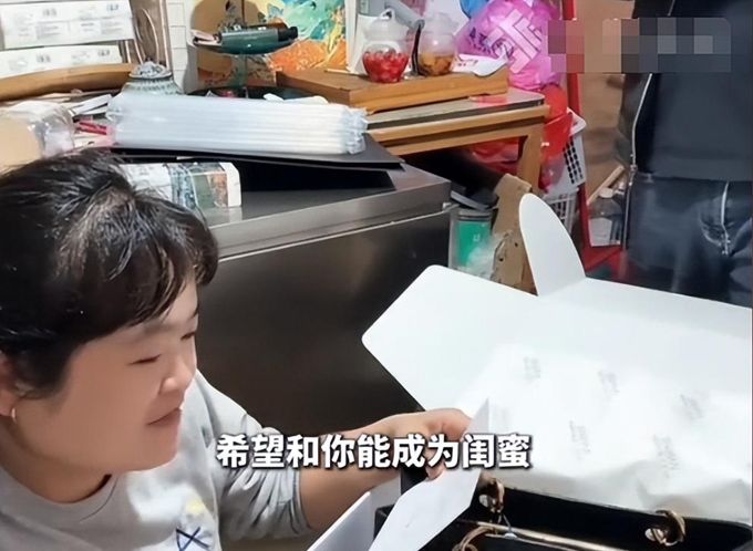 在视频里,晓华忙完歇下来后满怀笑容的亲自拆开了向太送给自己的包包。