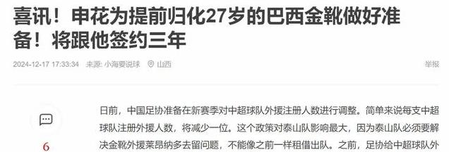 随着中超联赛冬季转会窗的悄然临近,整个足球圈的目光都聚焦在了这片绿茵场上。申花作为中超的传统强队,在这个转会窗口的动向尤为引人关注。上个赛季,申花以微弱的差距屈居中超亚军,这让球队上下都对下赛季的冠军充满了渴望。