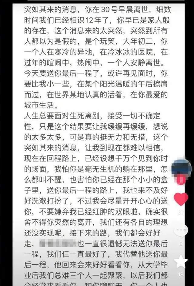 希望他的离去能够唤起更多人对健康的重视,避免类似的悲剧再次发生。