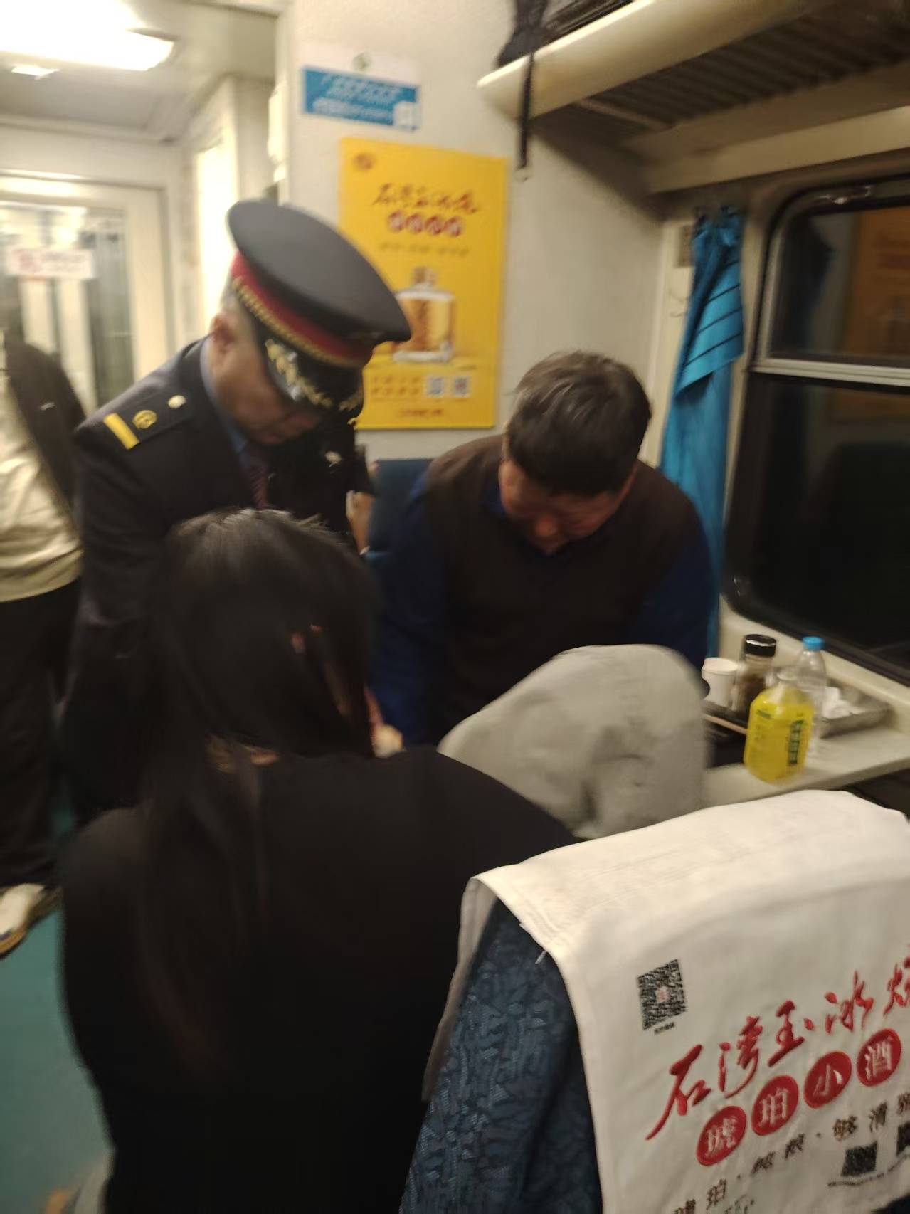 与此同时,列车工作人员同步开展暖心服务:为行动不便旅客提供重点帮扶,为经济困难旅客送上免费餐食,为无座乘客积极协调休息空间,多措并举提升旅途温度。途中,一名旅客突发晕厥休克,在列车长和乘警长的统一指挥下,金雨波第一时间参与紧急救护,与乘务人员协同处置,成功守护旅客生命安全。