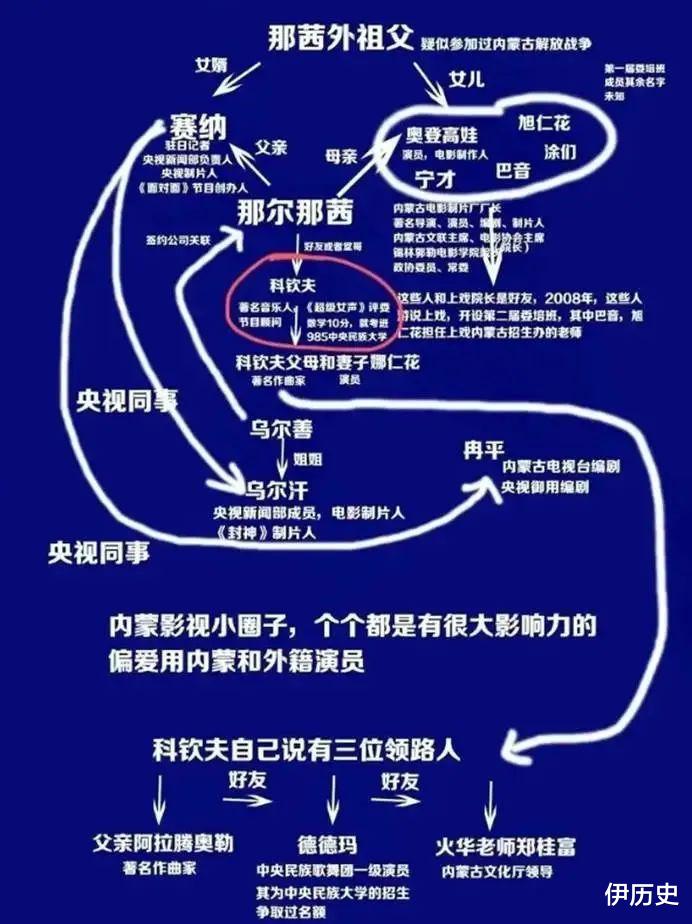 她的父亲手握巨大的媒体资源。她的母亲和那一帮同学,如宁才、巴音等人,牢牢把持着内蒙古的文艺圈。《封神》的导演乌尔善,其家人也与央视和内蒙古文艺圈关系匪浅。再加上那些手握招生名额的“守门人”……