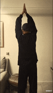 这名字比较形象,就像春风吹过柳枝那样,做法是:直直站着,双脚和肩膀一样宽,吸气的时候双臂抬起来,呼气的时候慢慢向一边弯腰,感受另一边腰部被拉伸,保持5秒后换另一边,左右各做3次,大概1分钟。