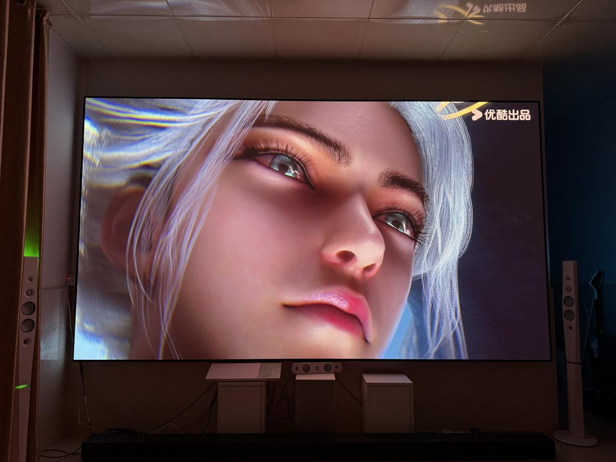 画质的细腻度同样经得起考验。当贝S7 Ultra Max搭载源自松林的大师金圈镜头,10组17片碳纤维镜筒模组内含3片超低色散ED镜片,配合4K原生分辨率,让画面从中心到边缘都保持锐利。行业首创的八重消散斑模组,使消散斑能力提升400%,肉眼基本感知不到杂斑,观影更舒适护眼。色彩表现上更是专业级水准,△E≈0.8的色准精度、100%覆盖Display P3等三大色域,还经过影院大师团队调校,支持杜比视界与HDR 10+认证。无论是播放4K电影还是展示家庭照片,肤色还原真实自然,色彩饱和度恰到好处,难怪有用户评价“这画质比电影院还细腻”。