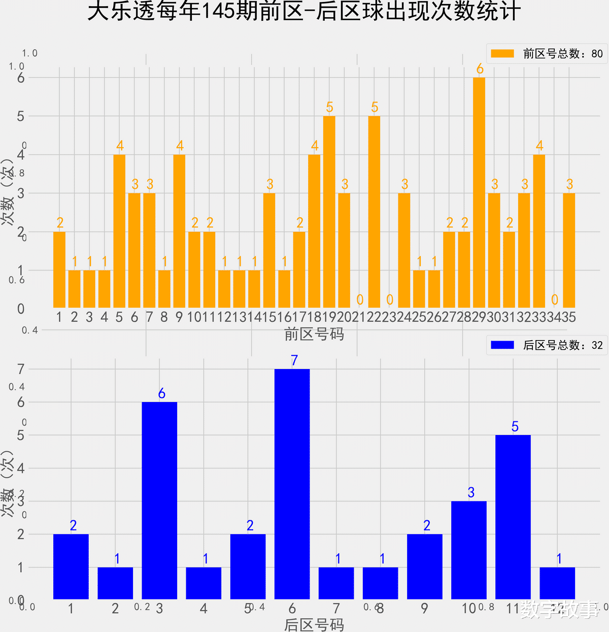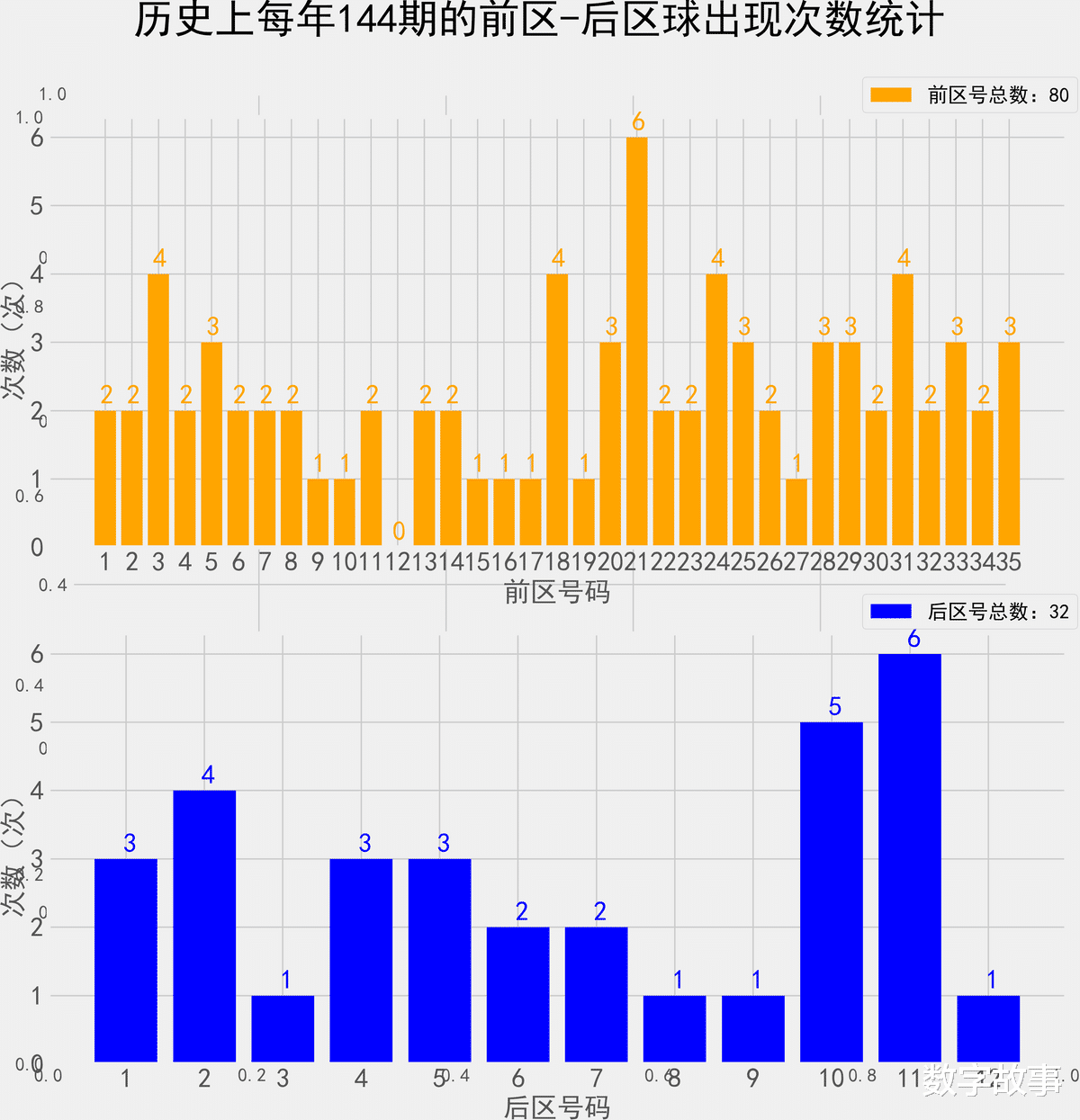 统计每年144期的样本数据: 80个前区号 32个后区号