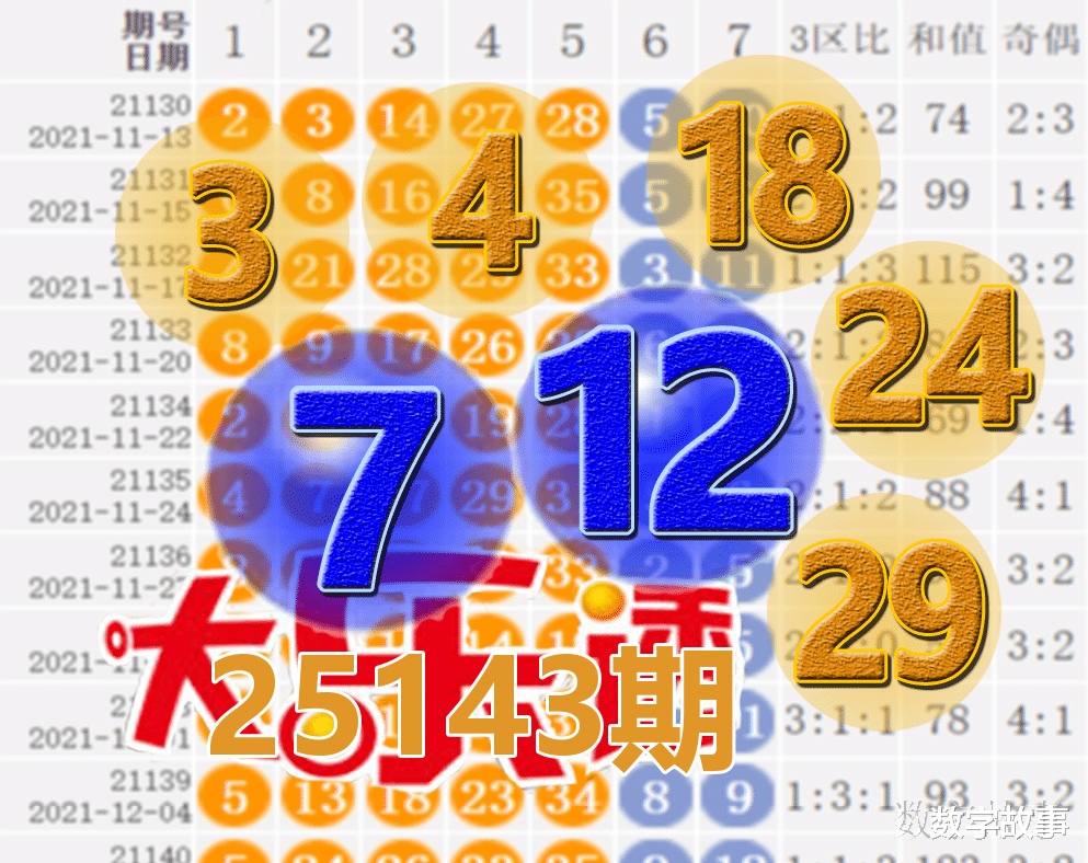大乐透25143期开奖结果及中奖情况:出奖时间: 2025-12-15 星期一 前区号:3-4-18-24-29后区号:7-12大乐透前区重号叠码:29前区隔期下落:4, 24, 29前区奇偶比:2:3 前区和值:78前区跨度:26 三区比:2:2:1连号: 3-4