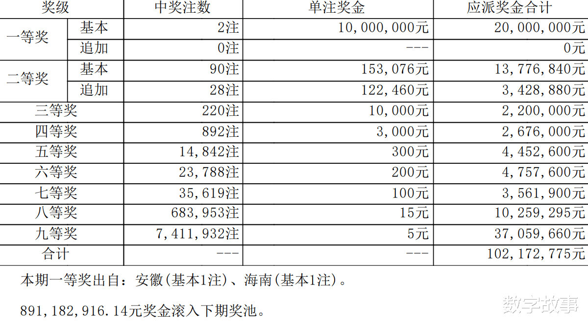 大乐透25143期一等奖:2注,追加: 0注二等奖:90注,追加: 28注。本期全国销售金额:2.922 亿 奖池滚存:8.912 亿.近15期奖池滚存, 中奖情况等信息: