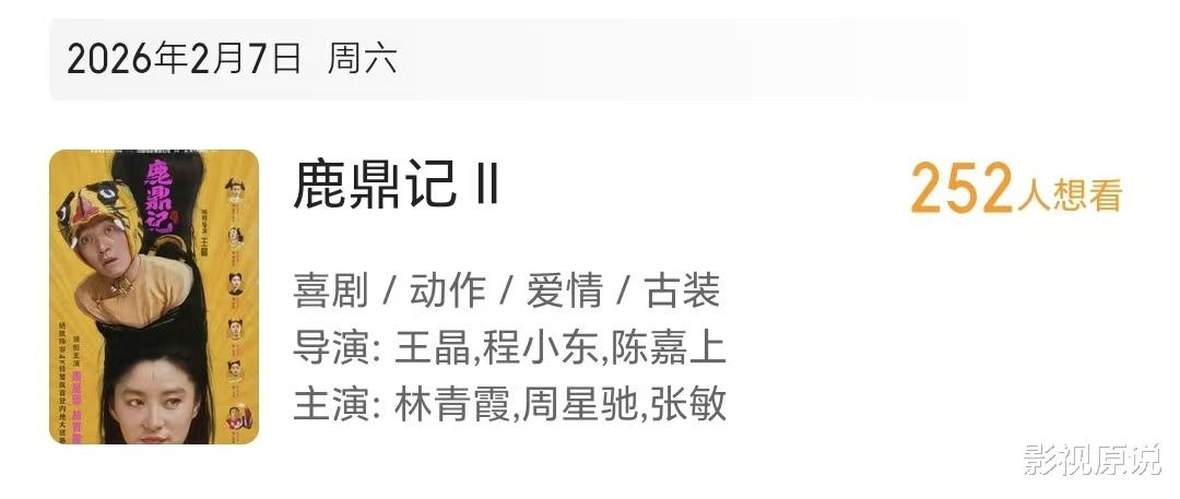 至于它的续集《鹿鼎记2》,质量以及口碑都不及前作。这一次定档后,关注度和期待值都不是很高,平台上的想看人数都不到300人。