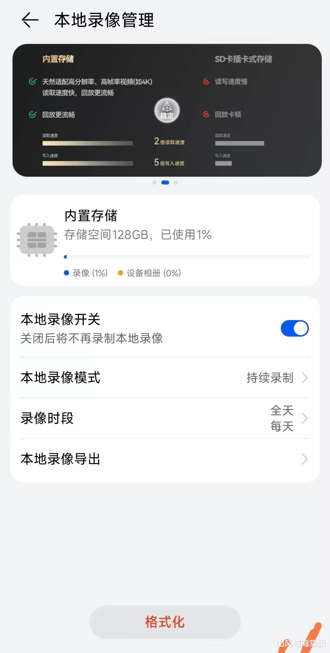 还有一点非常方便,以前使用的产品多采用SD卡,容易烧卡坏卡。这款产品升级机身内存(ROM),传输更加的安全,传输速度也更快更稳定。使用的这段时间,感觉没有出现少录制、跳帧的情况,读写速度也非常快~