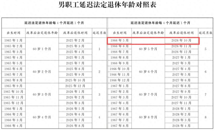 去年,我国正式实施延迟退休政策,男性职工、女性干部、女性企业职工的退休年龄均有所延迟,今年这项新政将继续实施且涉及面更广、影响更为深远。比如,出生于1966年5月的男性职工,法定退休年龄延至60岁零5个月,也就是从2026年5月退休延迟至2026年10月退休。