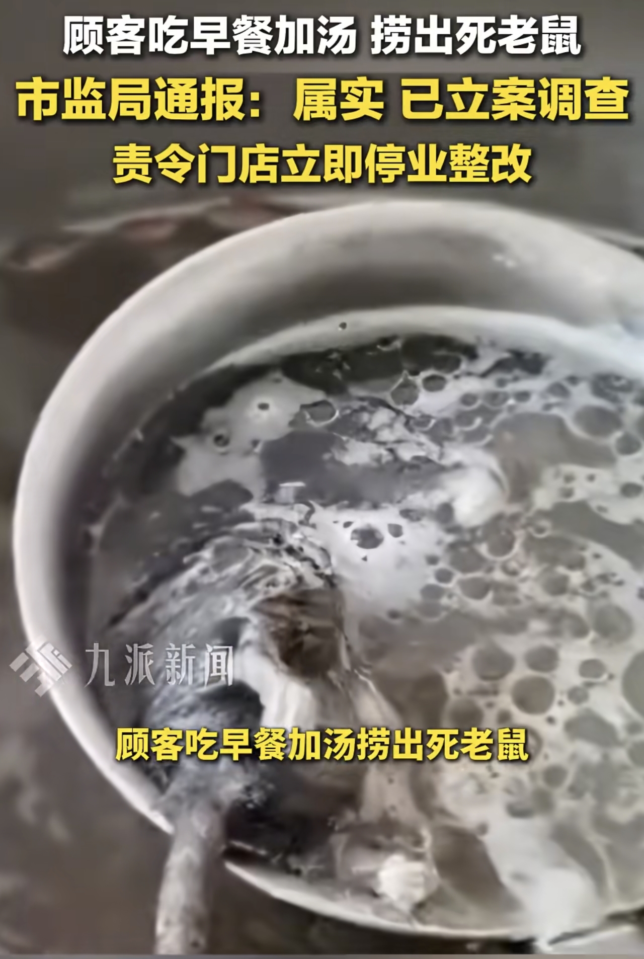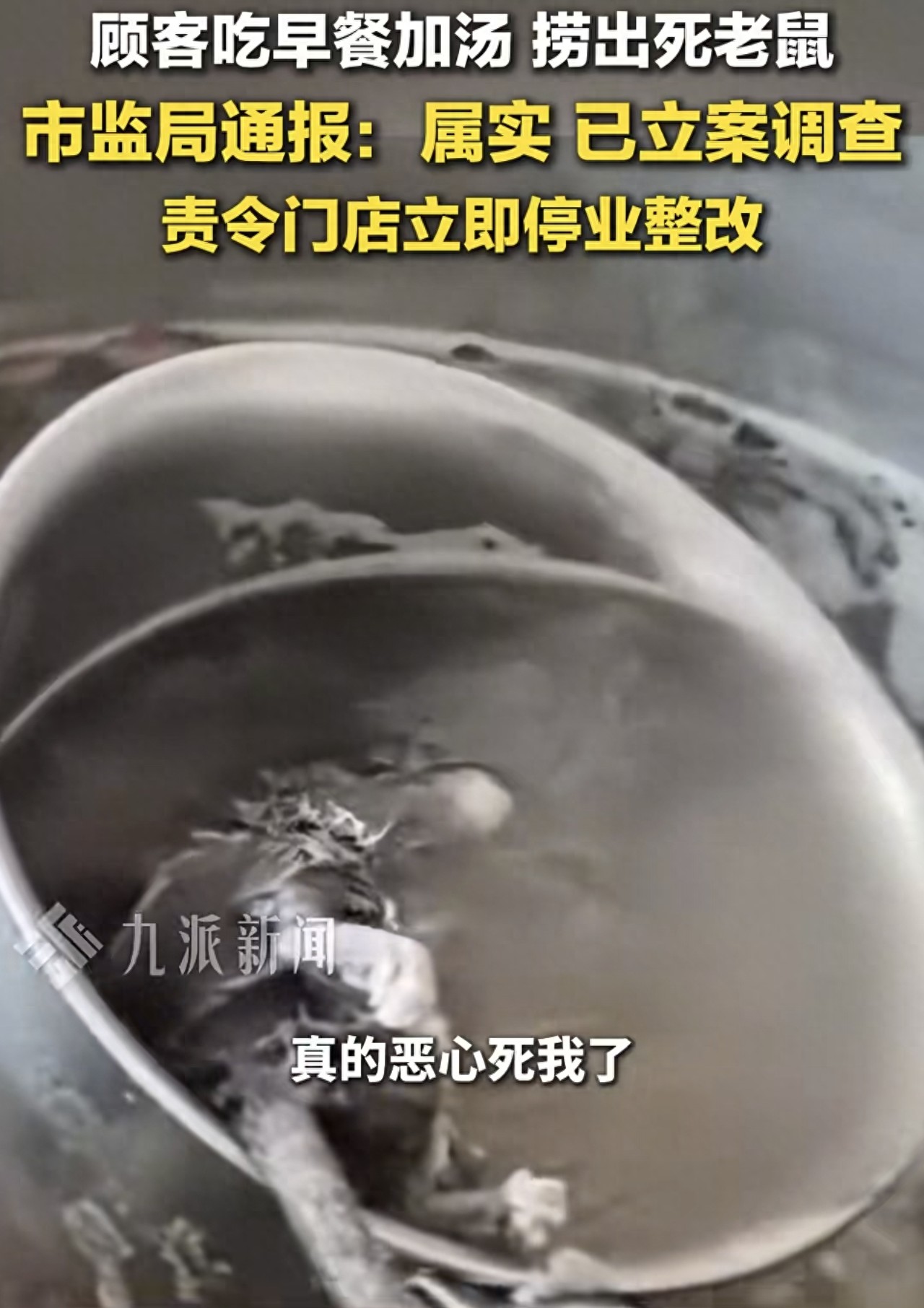 2025年12月25日,一则由当地网民发布的视频在网络上疯狂传播,视频中该网民本想在早餐店加一碗热汤暖胃,可伸手打捞时,却捞出了一只疑似老鼠的动物尸体,突如其来的一幕让当事人吓一跳,语气里满是震惊与恶心,这段极具视觉冲击力的现场视频,迅速点燃了网友的怒火,短时间内便登上了各大社交平台的热议榜单,食品安全这根紧绷的弦,再次被狠狠拨动。