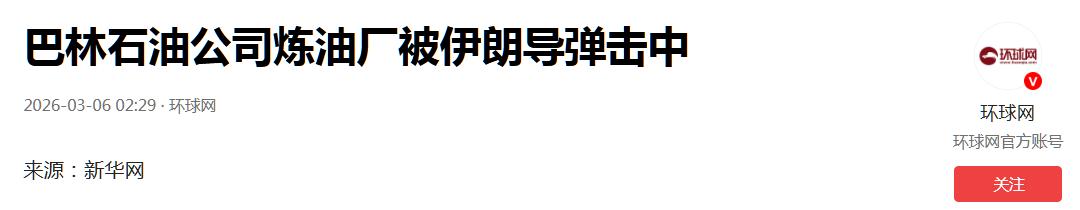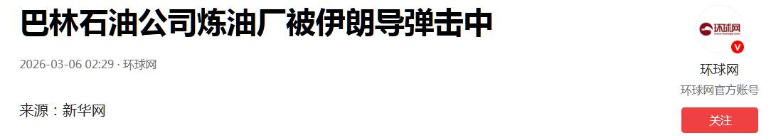 3月5日凌晨,巴林的马阿米尔炼油厂突遭伊朗发射的短程导弹精准打击,这座炼油厂是巴林石油经济的核心支柱,每天可加工26.7万桶原油。