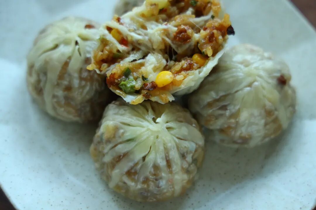 我最喜欢的就是它的“全能”。虾仁芝士版是小朋友的最爱,咸香里带着奶香,咬下去软糯中还夹着Q弹的虾肉。腊肠口味呢,是家里长辈的心头好,油润润的腊肉丁蒸出香味,全渗进糯米里,每一口都特别扎实。而且因为料用得足,糯米、蔬菜、肉、蛋(虾仁)全齐了,营养一点不含糊,对付不爱吃菜的小朋友特别管用。
