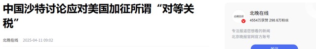 北晚在线2025-04-11——中国沙特讨论应对美国加征所谓“对等关税”