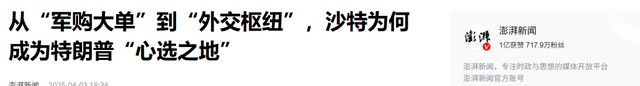 澎湃新闻2025-04-03——从“军购大单”到“外交枢纽”,沙特为何成为特朗普“心选之地”