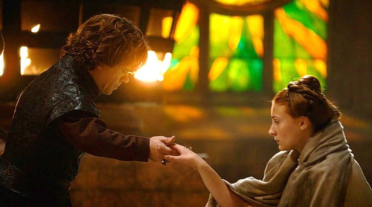 在君临城保卫战之后有功的提利尔家族要把小玫瑰嫁给乔佛里,乔佛里为小玫瑰的美貌拜倒,取消和三傻的婚约,三傻转身离开那一刻的转悲为笑,说明她已经逐渐放下淑女的面子,贵族的尊严。