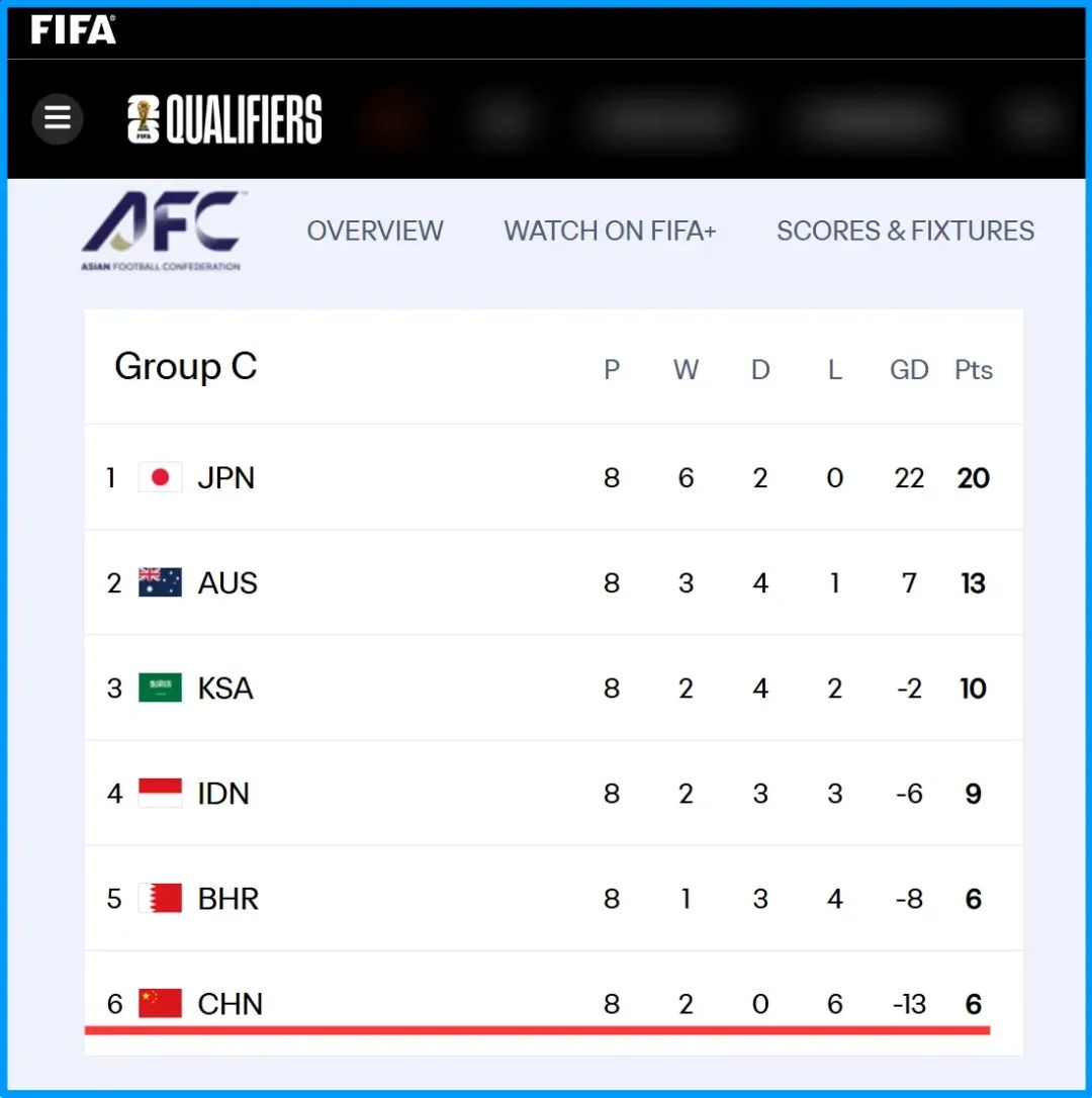 国际足联FIFA官方数据显示,目前,中国男足参加了8场比赛,赢2场、平0场、输6场,净胜球为-13,总积分为6分排名C组倒数第一;而印尼男足也参加了8场比赛,赢2场、平3场、输3场,净胜球为-6,总积分为9分排名小组第四位,排名C组第一的是8场6胜2平0负净胜球+22积20分的日本男足。