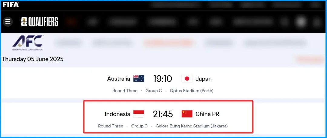 北京时间6月5日晚上21:45,2026年美加墨世界杯预选赛亚洲区第三阶段C组第9轮比赛中,中国队将对阵印尼队,国足将迎来“生死战”