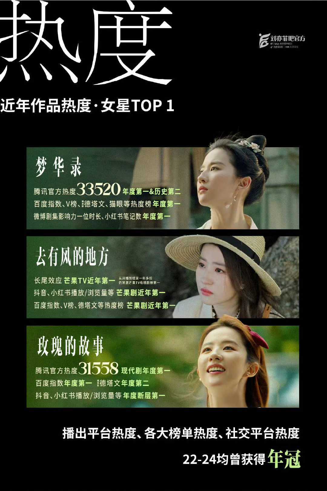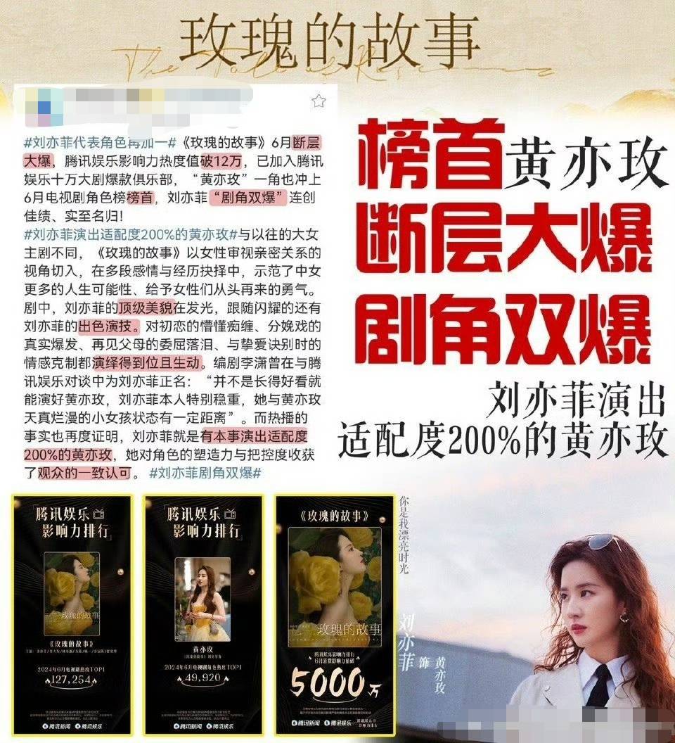 2024年,刘亦菲凭借《玫瑰的故事》一跃成为85花TOP。