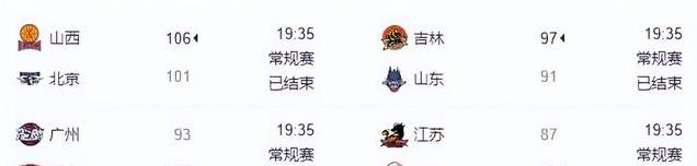 而山西汾酒以106比101击败北京北汽,终结了北京队的六连胜。吉林九台农商银行也爆了个大冷门,以97比91战胜了六连胜的山东高速,结束了自家的五连败。