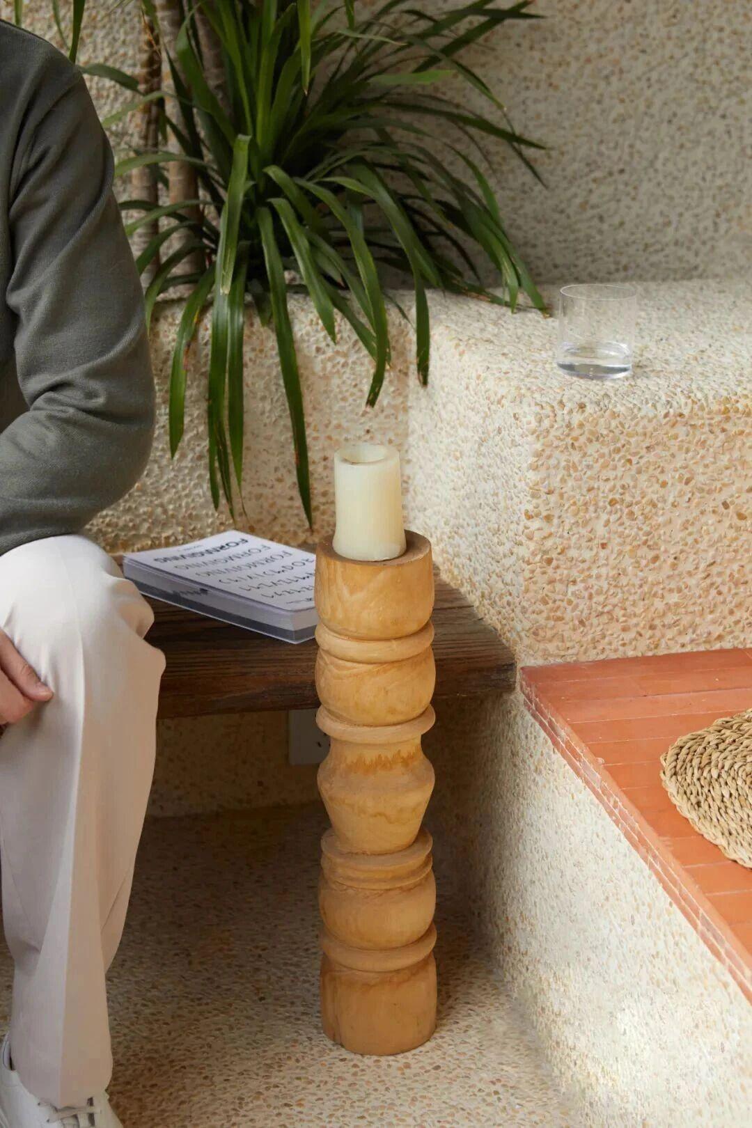 客厅角落还摆了张小餐桌,侧边的桌腿设计成了储物空间,里面放了几瓶好酒,可以收纳,也可以变成装饰的一部分。