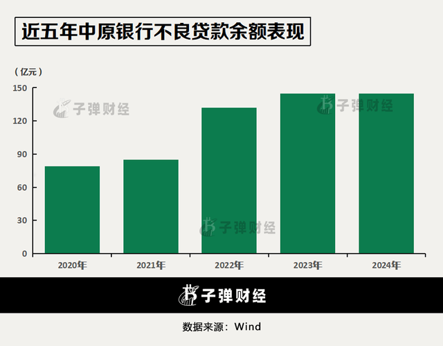 不良贷款方面,自2022年中原银行不良贷款余额大幅上升。