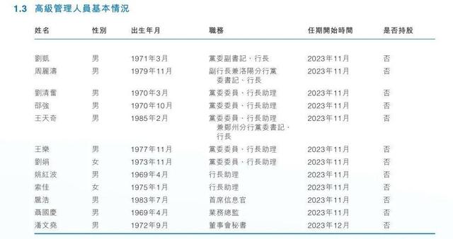 年报中披露的该行12名高级管理人员中,仅行长助理姚红波、业务总监聂国庆两位是“60后”;该行副行长周丽涛、董事会秘书潘文尧、财务会计部总经理佟琦、审计部总经理黄明以及多位行长助理,均为“70后”;行长助理王天奇、首席信息官扈浩为“80后”。
