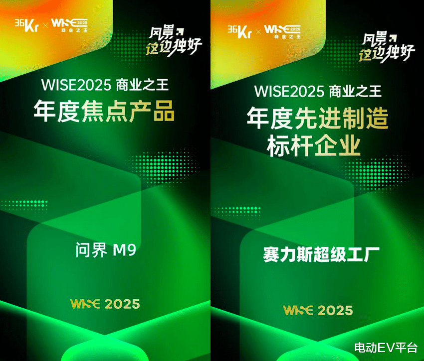 销量的爆发并非偶然。在11月28日举办的WISE2025商业之王大会上,赛力斯获得了来自业界的双重认可。