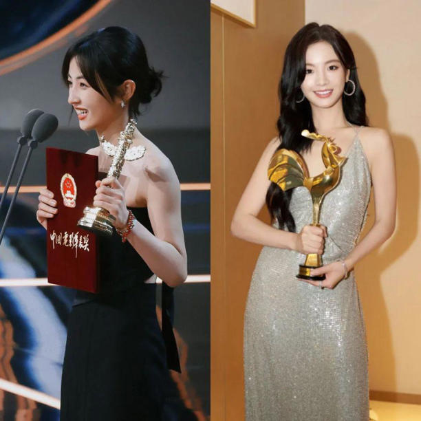 首先,向大家走来的最年轻的影后:华表影后张子枫、金鸡影后李庚希。
