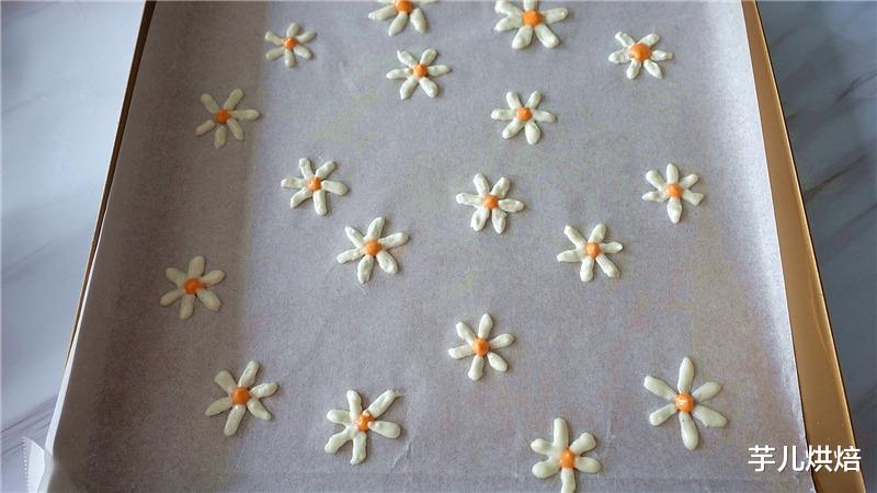 5.用原色面糊挤上花瓣,注意袋口不要剪太大了。