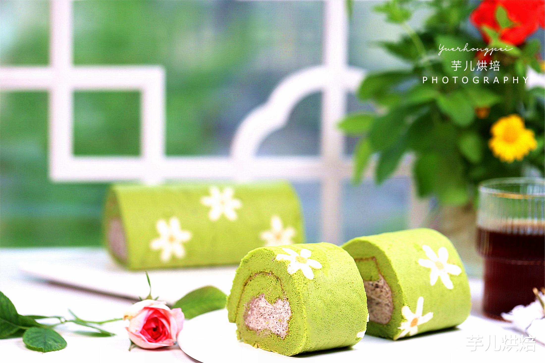 郊游当然少不了一款便于携带又美味可口的甜点了,今天我做了一款春意盎然的“小雏菊抹茶蛋糕卷”,采用的海盐芝士奥利奥內馅,咸香美味,好吃不腻,让你一开口就停不了。