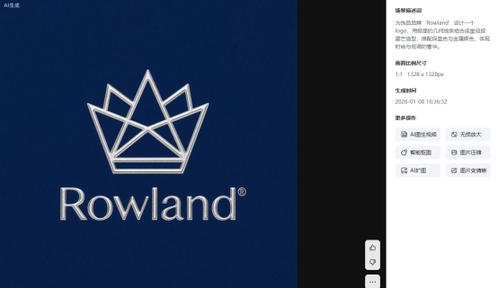 ①在输入框中描述LOGO的核心信息,例如品牌名称、风格偏好、字体感觉