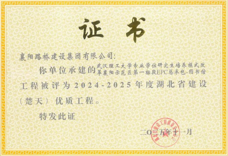近日,2024-2025年度湖北省建设(楚天)优质工程名单正式揭晓,汉江国投旗下襄阳路桥承建的武汉理工大学专业学位研究生培养模式改革襄阳示范区第一标段EPC总承包-先进制造科教融合中心、图书馆,国投・汀兰9#楼、12#楼等4项工程成功获评,这也是襄阳路桥首次斩获该省级权威奖项。