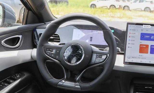 内饰方面,三辐式D型方向盘握感不错,怀挡设计也挺有新意。