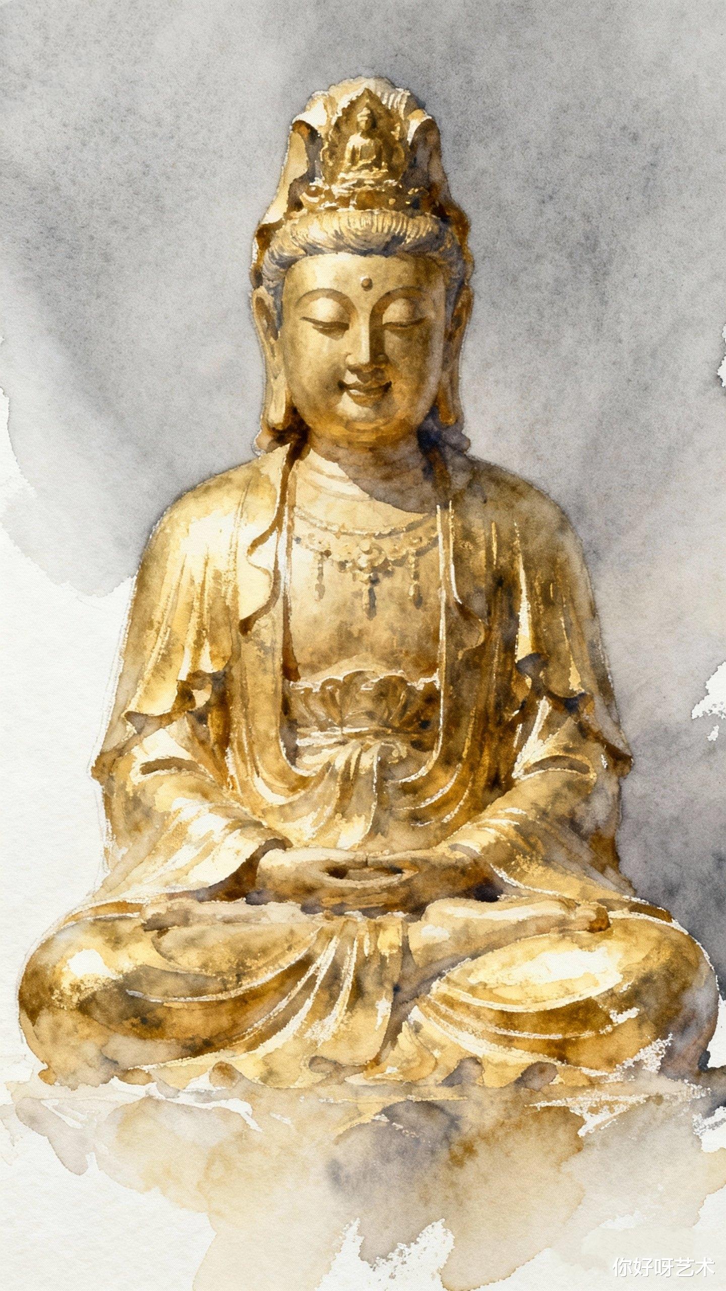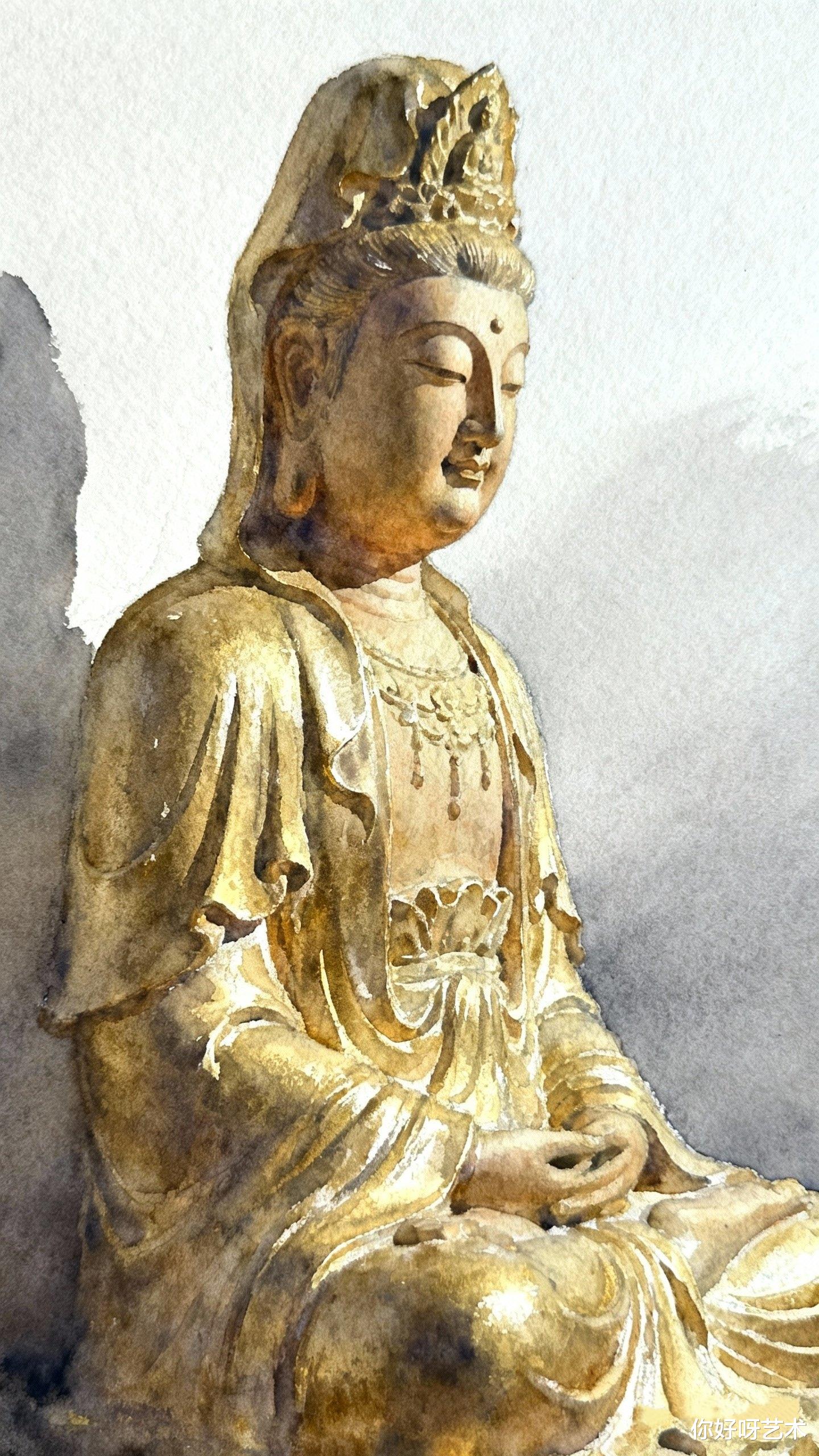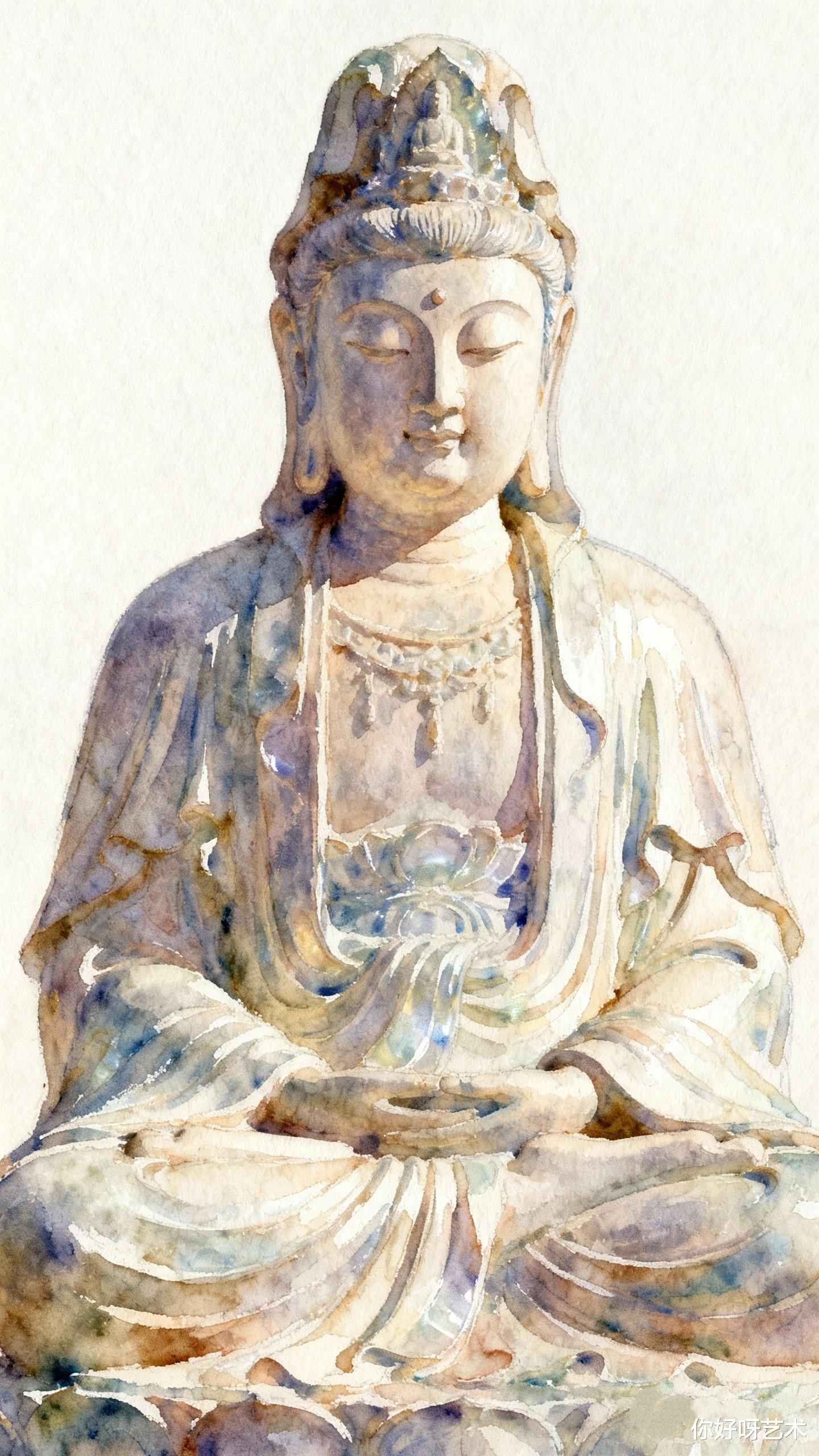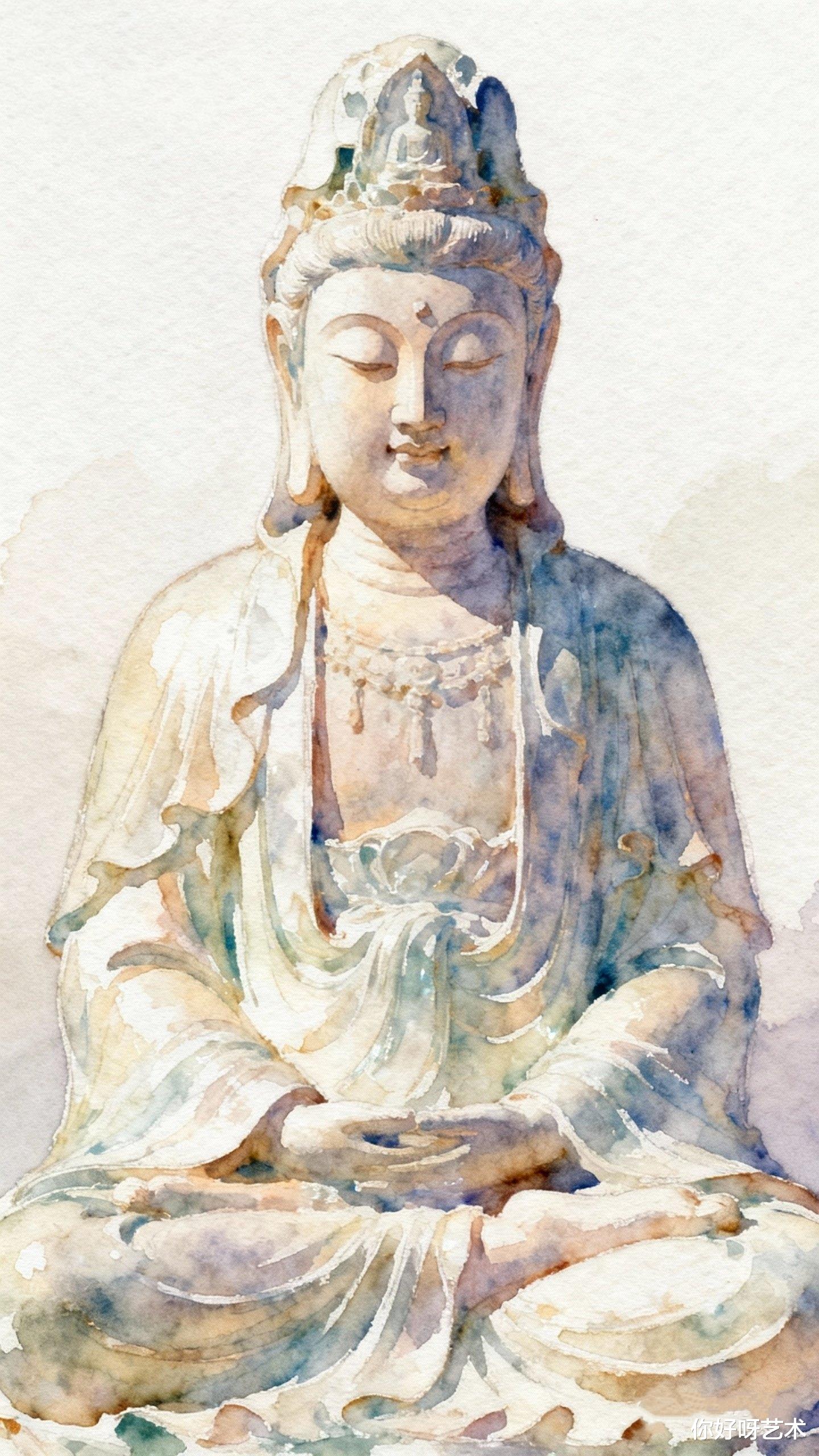 少女坐在画室的一角,阳光斜斜地穿过玻璃,洒在她的画纸上,为即将诞生的水彩佛像铺上了一层金色的光晕。她手中的画笔,蘸着调色盘上最纯净的色彩,在画纸上轻轻勾勒。那色彩,如同冬日的天空,深邃而宁静,是佛像的底色,也是她心中对佛性的初印象。