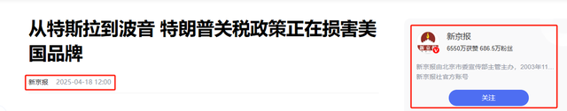 4.原文登载于新京报2025年04月18日关于“从特斯拉到波音特朗普关税政策正在损害美国品牌”的报道