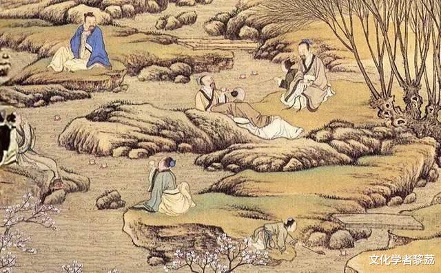 菰蒲葱翠,柳阴笼烟,转过芙蓉园,忽见数十文士席坐溪畔。我寻得一处紫藤花架下的空位,看文人雅士们临流列坐,将漆制羽觞放入清流。漆耳杯随蜿蜒流水飘荡,停驻处便有人即兴赋诗。邻座那位挥毫蘸墨的白衣郎君,腰间蹀躞带的金钩碰响玉珂,他的纱帽上斜插着一枝沾露的杏花。唐代科举发榜时间为上巳节前后,这些文士正是雁塔题名、春风得意的新科进士,他们在效仿永和兰亭的雅集遗风,只是大唐的曲水流觞更显豪放——宫人捧着金盘拾起顺流而下的诗稿,沾着酒渍的诗笺早已飞报梨园教坊。琉璃盏中琥珀光,诗稿未干已传唱。曲水边,斗诗酒,我看到众生百态,风气烂漫:有伸手从水中捞酒杯的,有踏歌的,有奋笔疾书的,有共展长卷的,有自斟自酌的,有醉而忘归的,还有一群仆僮相机行事——所有人都在随性舒展。毕竟,春三月,上巳日,最重要的就是在春天里纵情烂漫一场。