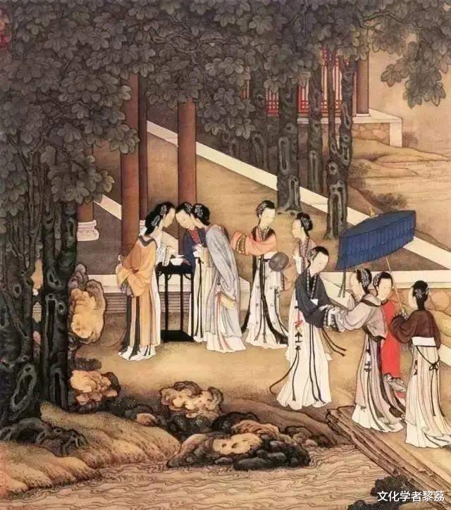 我才来到长安城南,曲江水边,发现早已挤满了盛装男女。三月初三的春风轻拂,天朗气清,曲江两岸垂柳含烟,桃花灼灼,水面倒映着雕甍绣槛的亭台楼阁,连空气中都弥漫着芍药与兰草的芬芳。新柳蘸着露水垂向碧波,树下早已铺满锦绣茵席。身着茜素罗裙的少女们提着竹篮,将兰草、桃花瓣撒入粼粼春水。人们尊兰草为灵草,觉得芬馥的兰气能够辟邪祛病,以柳枝蘸取花瓣水,点头点身,是一种祈福避祸的仪式。芳树之下,锦茵之上,浸着辛夷与杜衡的兰汤,被倾入一个个金盆银匜,仕女们以兰汤净手,柳枝拂尘,除去旧秽,完成古老的水畔净化仪式,祈求福祉降临。
